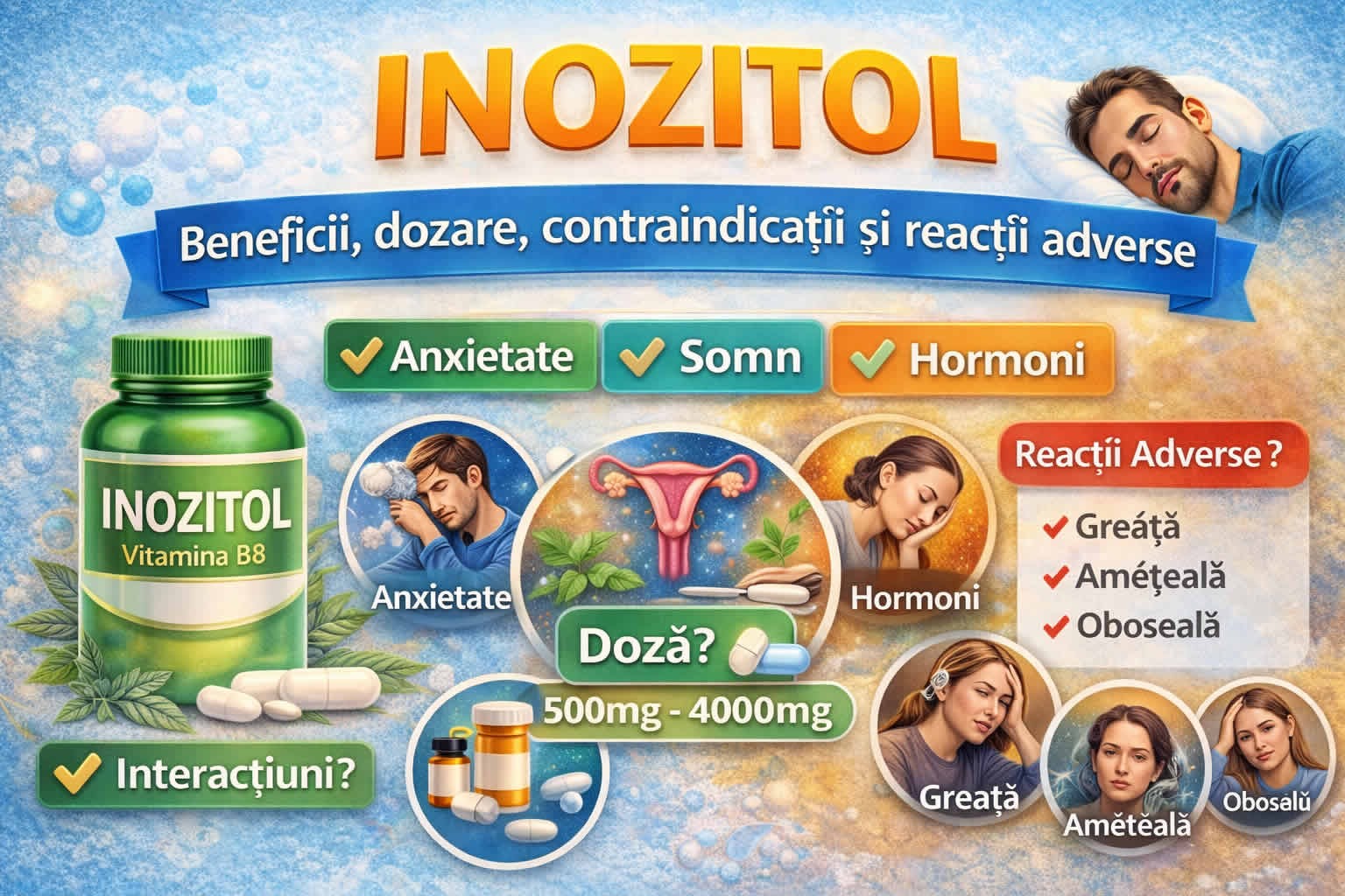 Inozitol: Beneficii pentru anxietate, somn si echilibru hormonal, contraindicații si reactii adverse