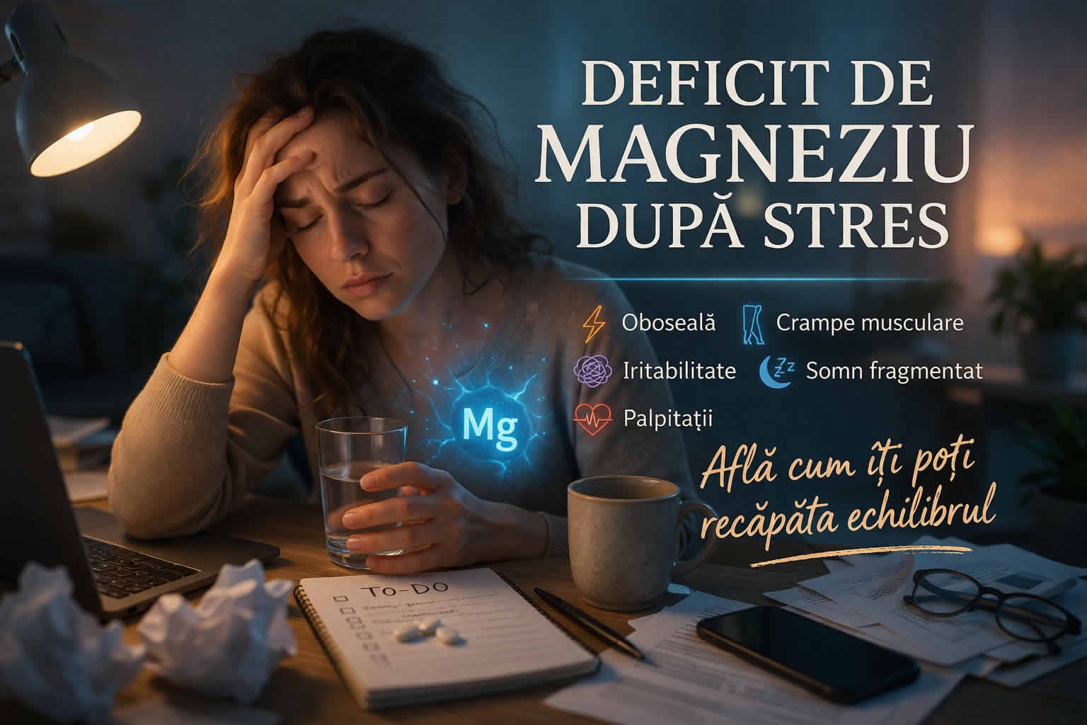 Stresul prelungit poate contribui la scăderea rezervelor de magneziu și poate amplifica simptome precum oboseală, crampe musculare, iritabilitate, somn fragmentat și palpitații. În acest articol afli cum se leagă stresul de deficitul de magneziu, ce semne merită urmărite, ce analize sunt utile și ce forme de magneziu pot avea sens în funcție de simptome și toleranță digestivă.