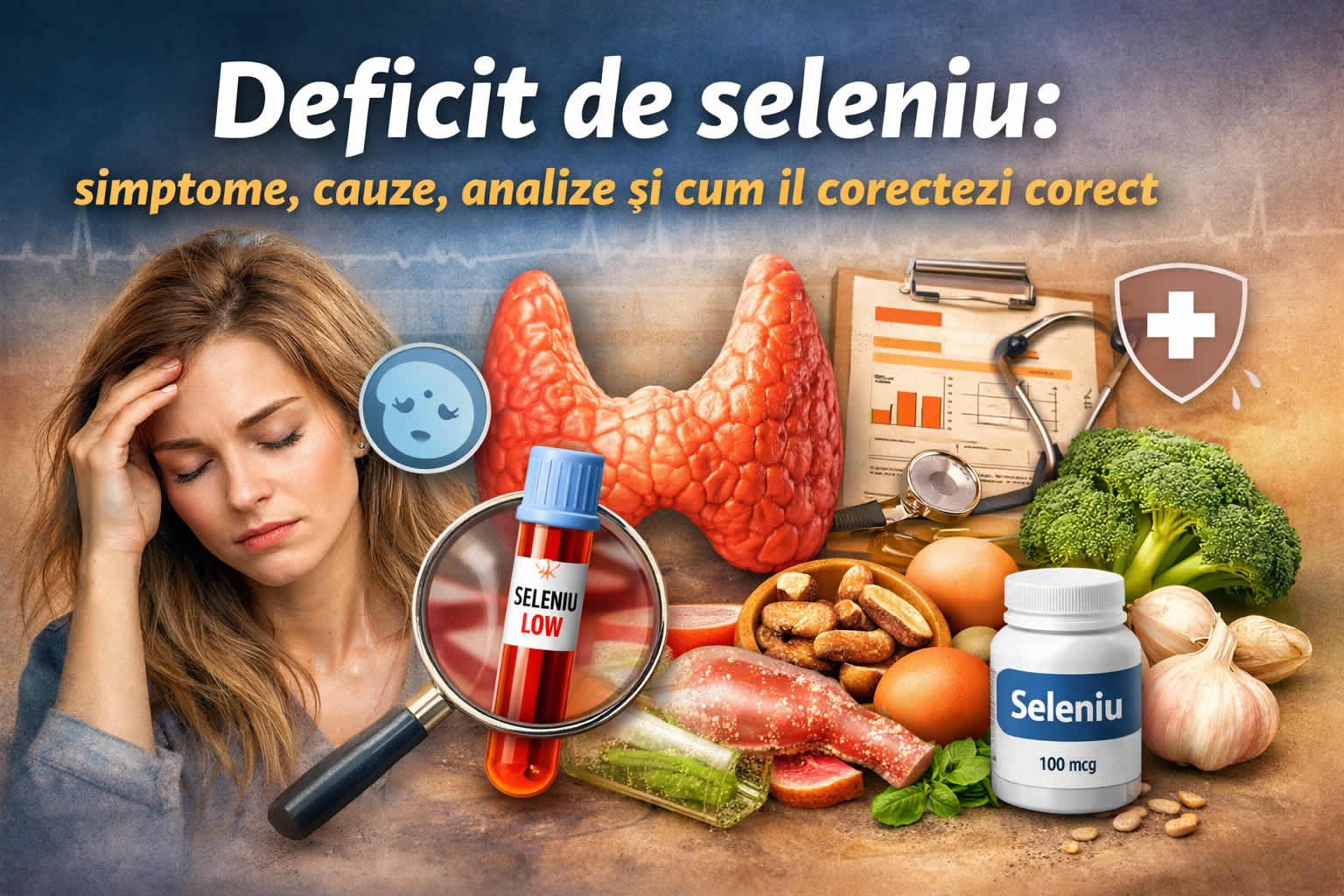 Deficitul de seleniu poate influența energia, imunitatea, funcția tiroidei, aspectul părului și rezistența generală a organismului. În acest articol afli care sunt cele mai frecvente simptome, ce cauze pot duce la scăderea nivelului de seleniu, ce analize merită luate în calcul și cum corectezi această carență în mod echilibrat, fără excese și fără greșeli frecvente.