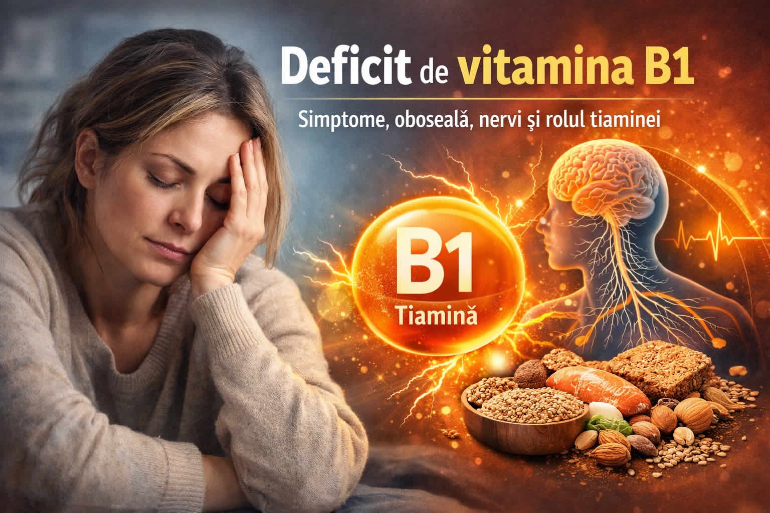 Deficitul de vitamina B1 poate începe discret, cu oboseală, slăbiciune, iritabilitate și lipsă de energie, dar în timp poate afecta serios sistemul nervos, mușchii și chiar inima. Mulți ignoră primele semne sau le confundă cu stresul, epuizarea ori lipsa somnului. În acest articol afli ce simptome pot ascunde lipsa de tiamină, cine are risc mai mare, ce analize merită luate în calcul și ce poți face pentru a corecta mai repede problema.
