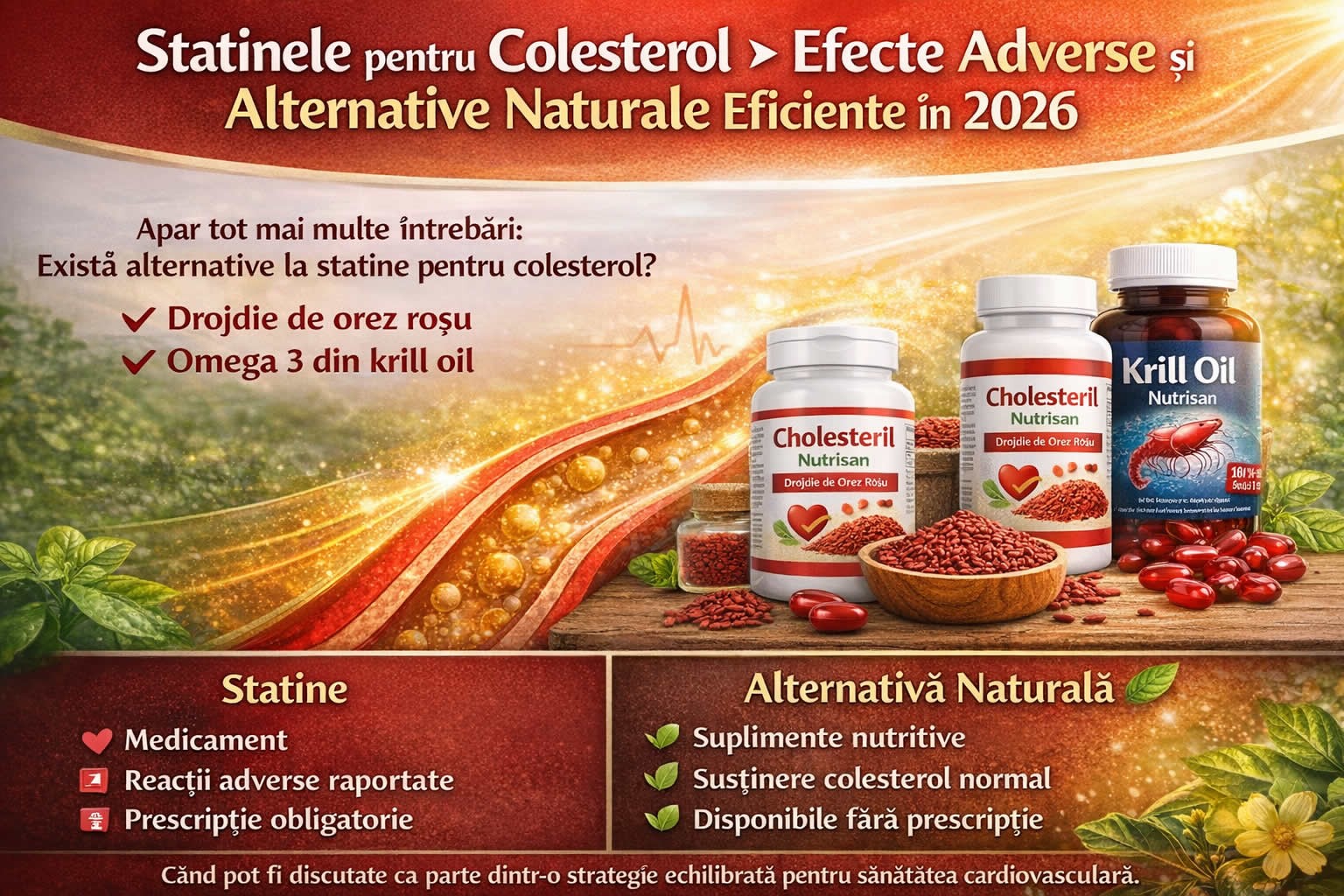 Statinele sunt soluția standard pentru colesterol crescut, dar tot mai multe persoane caută alternative naturale din cauza efectelor adverse. Descoperă ce opțiuni există pentru susținerea colesterolului și trigliceridelor – de la drojdie de orez roșu la Omega 3 din krill oil – și când pot fi discutate ca parte dintr-o strategie echilibrată pentru sănătatea cardiovasculară.
