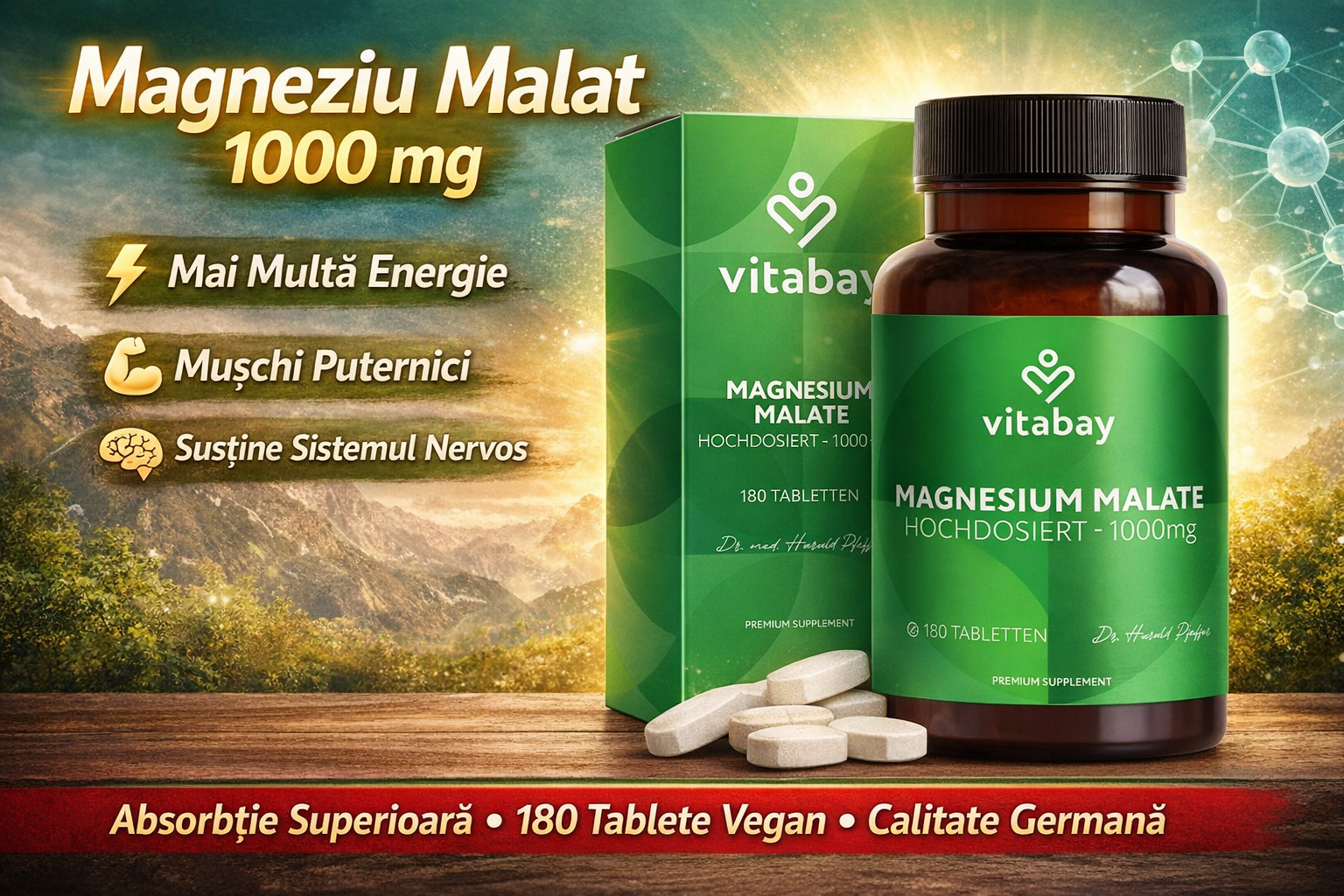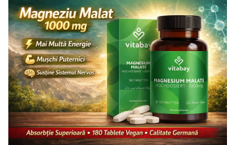 Magneziu Malat 1000 mg 180 Tablete Vegan Vitabay este o alegere excelentă pentru cei care caută un supliment de magneziu eficient, bine absorbit și ușor de integrat în rutina zilnică.