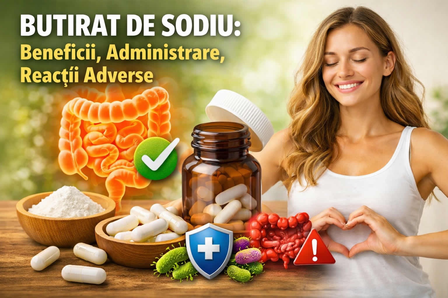 Butiratul de sodiu este un compus tot mai căutat pentru susținerea sănătății intestinale, a microbiomului și a barierei digestive. În acest articol afli ce este, cum acționează, ce beneficii poate avea pentru colon iritabil, balonare și inflamație intestinală, cum se administrează corect și ce reacții adverse trebuie să cunoști înainte de utilizare.