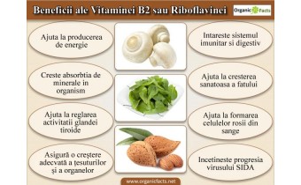 Beneficii vitamina B2: stimuleaza energia, creste circulatia sangvina, promoveaza cresterea si dezvoltarea, regleaza activitatea tiroidiana, ingrijeste pielea, protejeaza sistemul nervos, protejeaza vederea.
